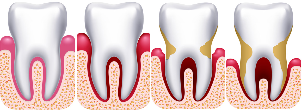Neben Karies, die zu Löchern in den Zähnen führt, gibt es weitere bakteriell Erkrankung:die Parodontitis. Die Parodontitis ist eine Entzündung des tieferliegenden Zahnhalteapparts. Die Endung „-itis“ weist auf eine Entzündung hin. Rötungen, Schwellungen, Zahnfleischbluten, freiliegende Zahnhälse sind erste, ernstzunehmende Symptome. Unbehandelt wird durch die andauernden Entzündungsprozesse immer mehr Gewebe zerstört bis hin zum vollständigen Zahnverlust. Bei Problemen mit dem Zahnfleisch sollten Sie Ihren Zahnarzt aufsuchen.